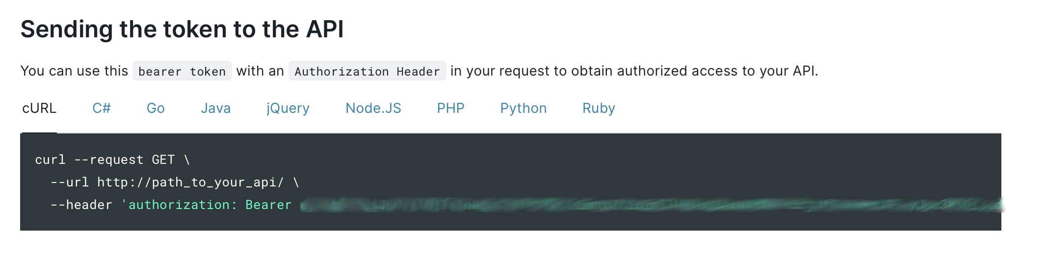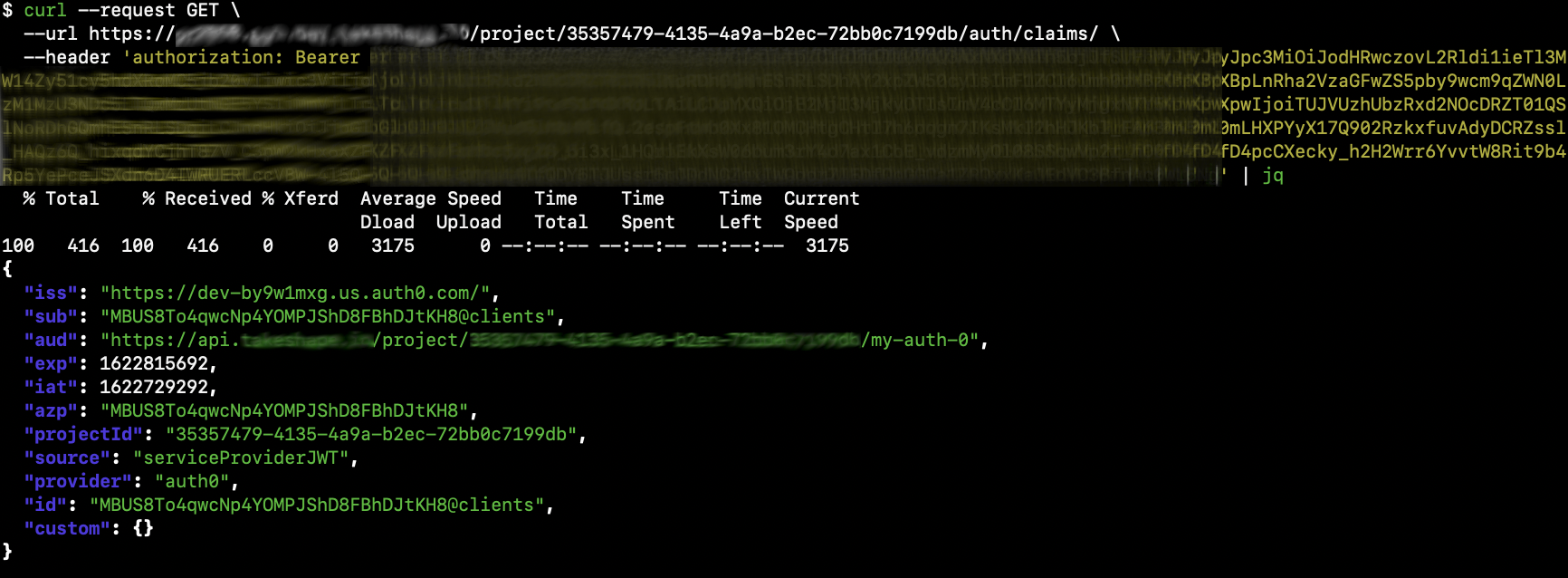Running this command uses a special machine-to-machine access token in the request that validates that the service configuration is correct tokens from Auth0 are being processed.